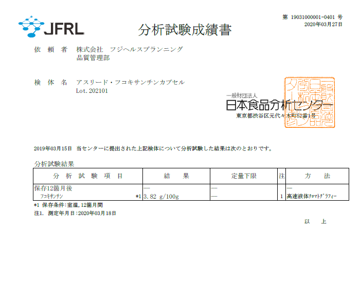 カプセル 100gあたり (カプセル312粒相当) に 3.75 (3750mg) のフコキサンチンが含まれています